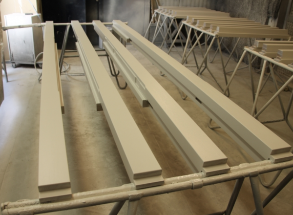 Verschillende kozijnen van de Rehobothschool te Geldermalsen hebben we vervangen. De nieuwe kozijnen heeft Daan in de werkplaats gemaakt en in de spuitcabine de grondlak gespoten. Doordat we alle machines hiervoor in huis hebben zijn we flexibel in maatvoering, soort profilering, planning etcetera.